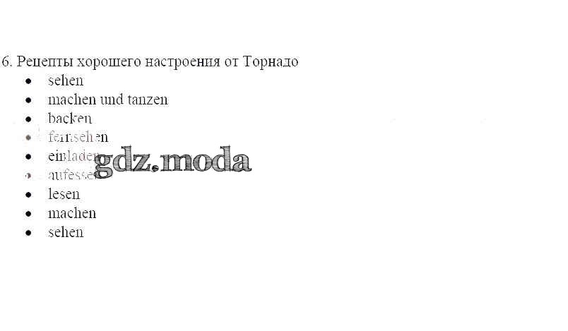 ГДЗ решение к заданию № 6 Немецкий язык 5 класс рабочая тетрадь Яцковская Г.В. Просвещение 2019 Часть 1, Часть 2, Часть 3, Часть 4 ФГОС бесплатно на гдз.мода!