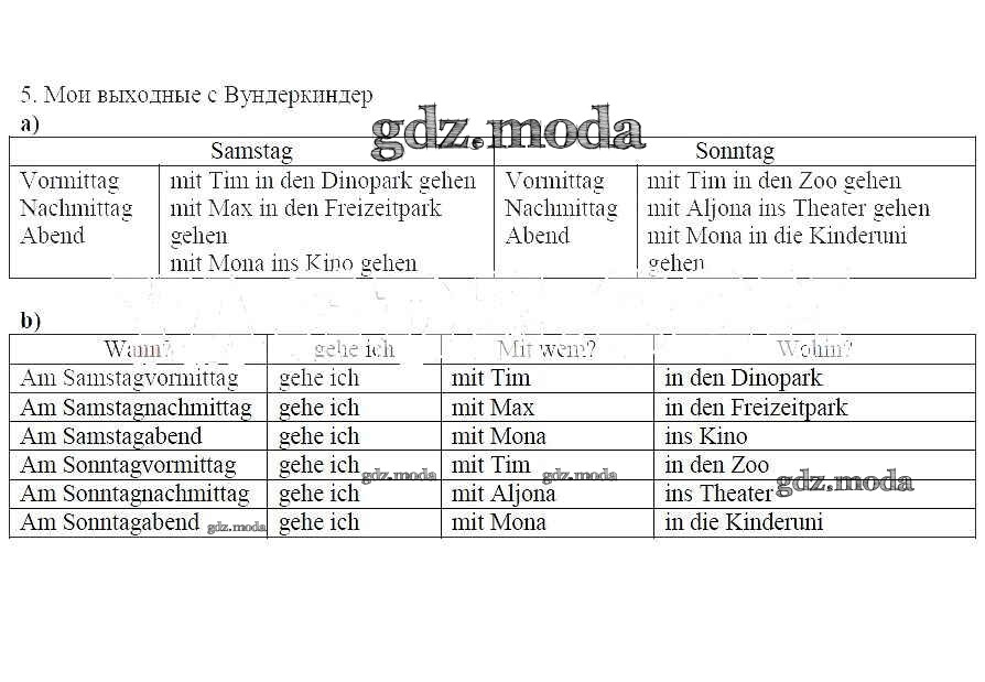 ОТВЕТ на задание № 5 Рабочая тетрадь по Немецкому языку 5 класс Яцковская Wunderkinder