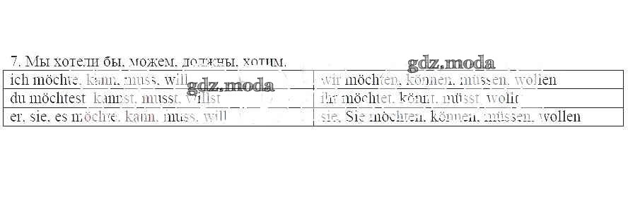 ГДЗ решение к заданию № 7 Немецкий язык 5 класс рабочая тетрадь Яцковская Г.В. Просвещение 2019 Часть 1, Часть 2, Часть 3, Часть 4 ФГОС бесплатно на гдз.мода!