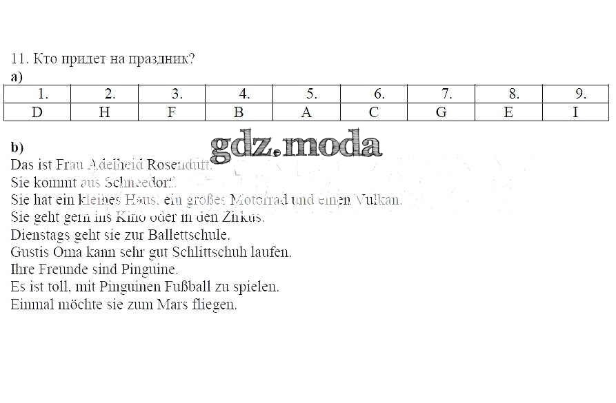 ГДЗ решение к заданию № 11 Немецкий язык 5 класс рабочая тетрадь Яцковская Г.В. Просвещение 2019 Часть 1, Часть 2, Часть 3, Часть 4 ФГОС бесплатно на гдз.мода!
