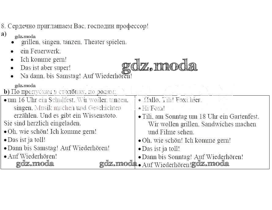 ГДЗ решение к заданию № 8 Немецкий язык 5 класс рабочая тетрадь Яцковская Г.В. Просвещение 2019 Часть 1, Часть 2, Часть 3, Часть 4 ФГОС бесплатно на гдз.мода!