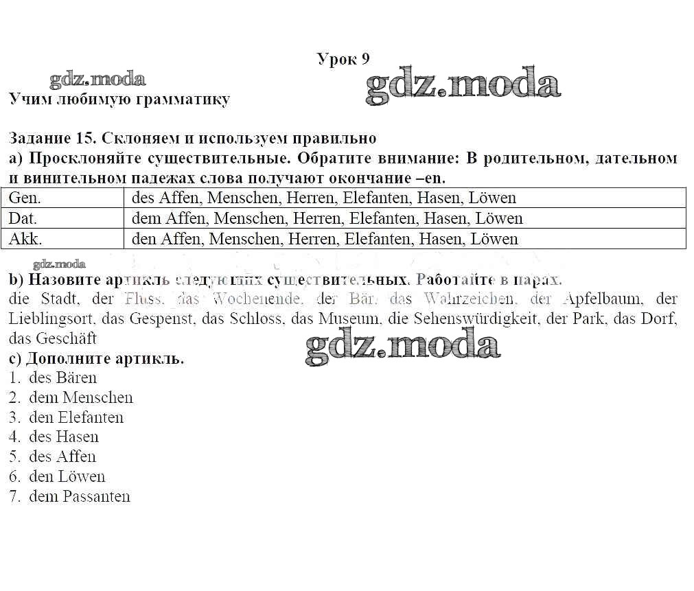 ГДЗ решение к заданию № 15 Немецкий язык 5 класс Яковлева Л.Н. Просвещение 2020 Углубленный уровень ФГОС бесплатно на гдз.мода!