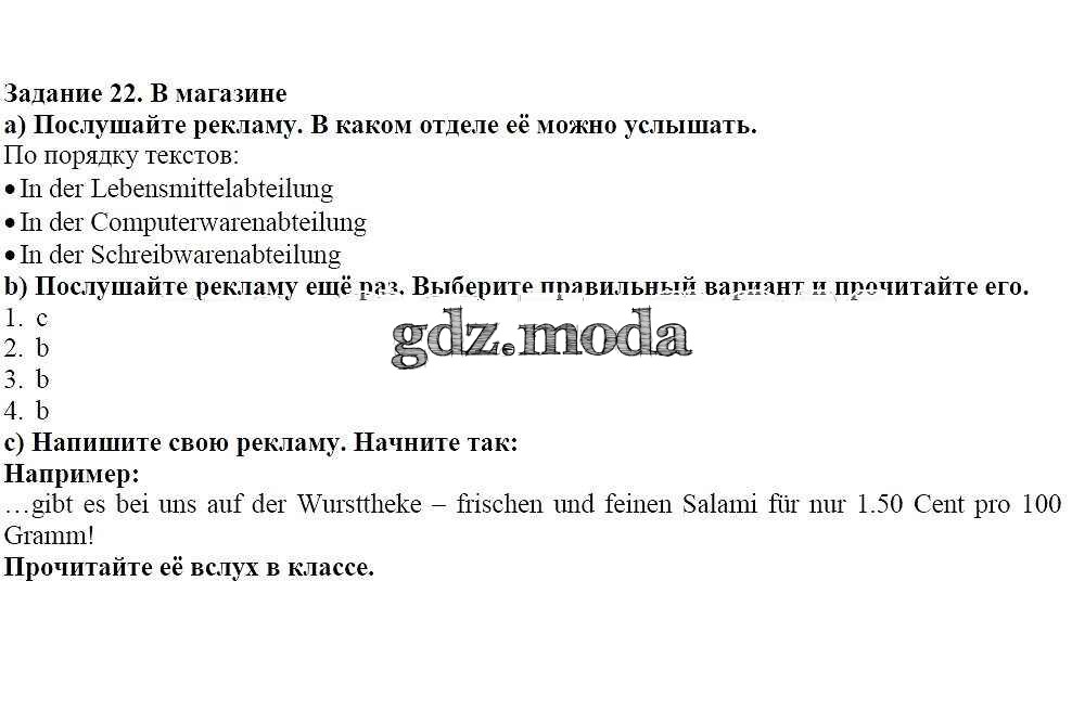 ГДЗ решение к заданию № 22 Немецкий язык 5 класс Яковлева Л.Н. Просвещение 2020 Углубленный уровень ФГОС бесплатно на гдз.мода!