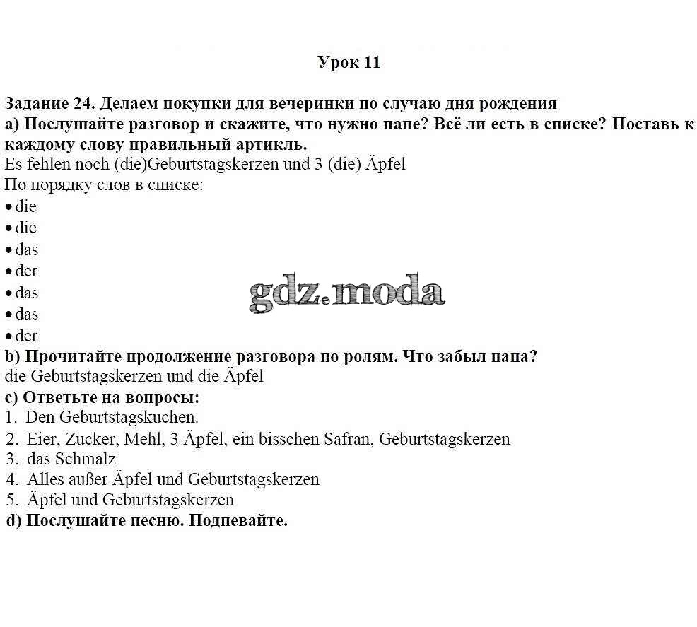 ГДЗ решение к заданию № 24 Немецкий язык 5 класс Яковлева Л.Н. Просвещение 2020 Углубленный уровень ФГОС бесплатно на гдз.мода!