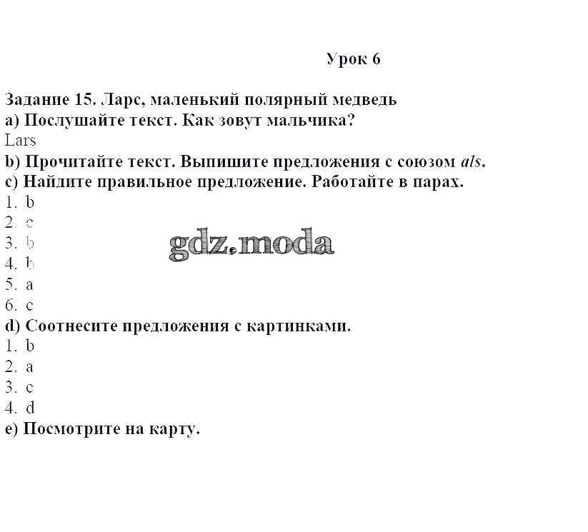 ГДЗ решение к заданию № 15 Немецкий язык 5 класс Яковлева Л.Н. Просвещение 2020 Углубленный уровень ФГОС бесплатно на гдз.мода!