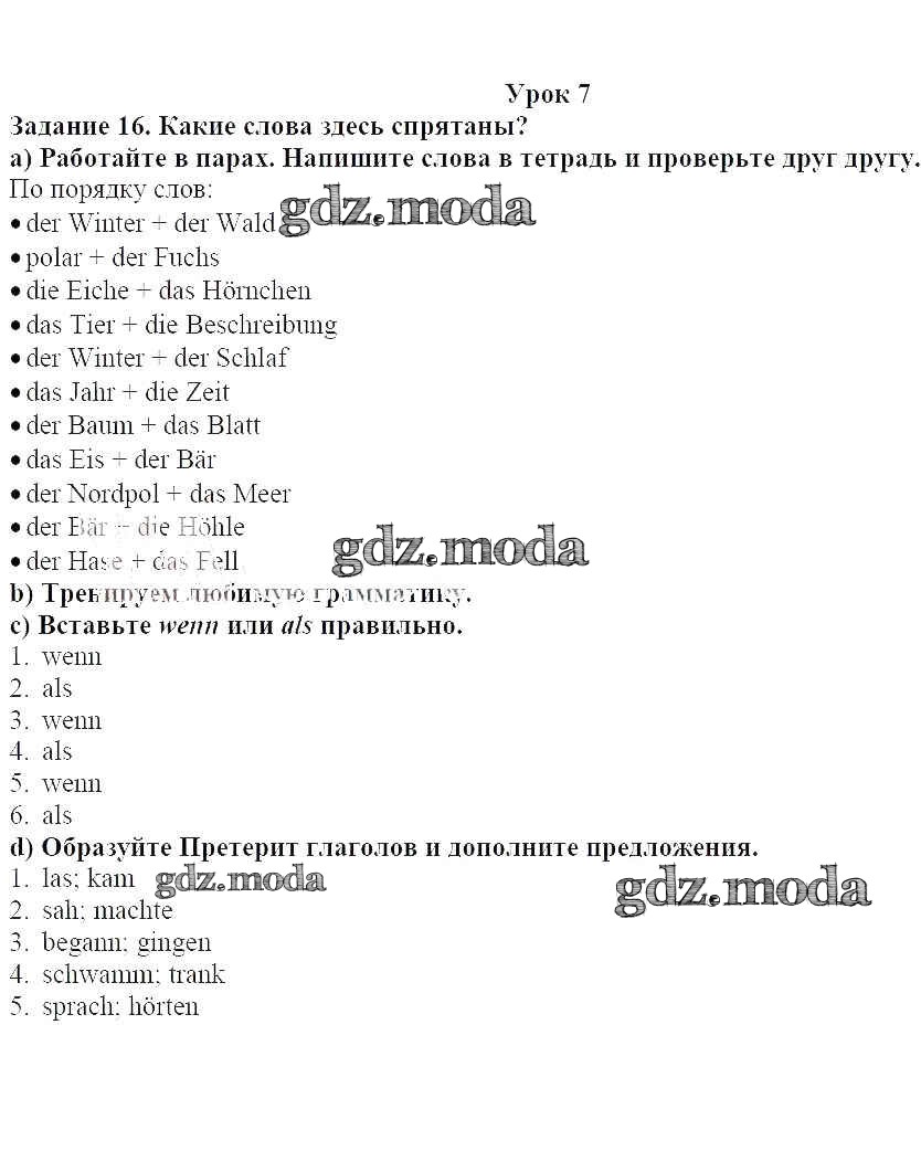 ГДЗ решение к заданию № 16 Немецкий язык 5 класс Яковлева Л.Н. Просвещение 2020 Углубленный уровень ФГОС бесплатно на гдз.мода!