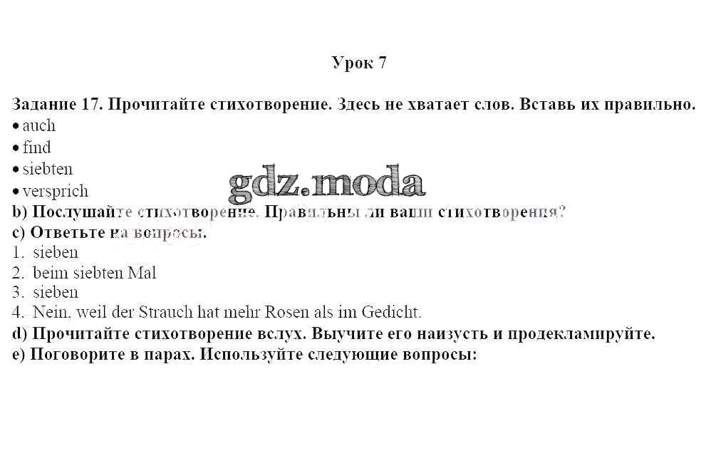 ГДЗ решение к заданию № 17 Немецкий язык 5 класс Яковлева Л.Н. Просвещение 2020 Углубленный уровень ФГОС бесплатно на гдз.мода!