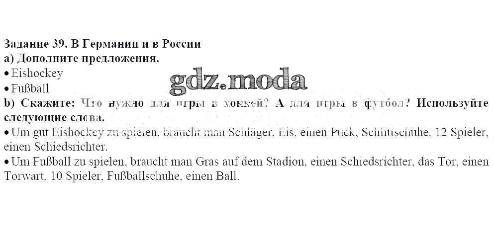 ГДЗ решение к заданию № 39 Немецкий язык 5 класс Яковлева Л.Н. Просвещение 2020 Углубленный уровень ФГОС бесплатно на гдз.мода!