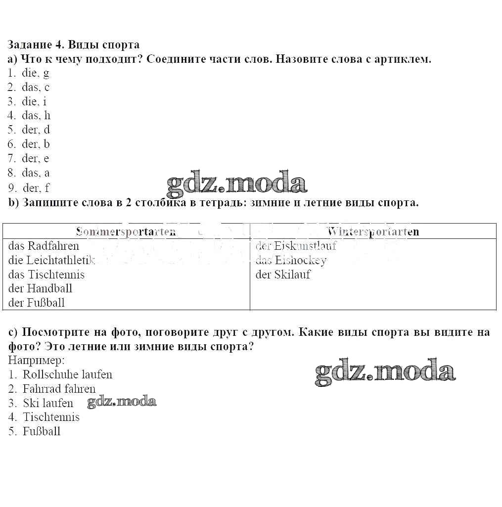 ГДЗ решение к заданию № 4 Немецкий язык 5 класс Яковлева Л.Н. Просвещение 2020 Углубленный уровень ФГОС бесплатно на гдз.мода!