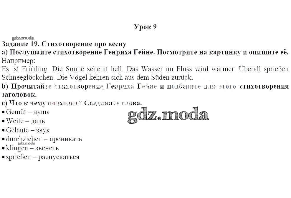 ГДЗ решение к заданию № 19 Немецкий язык 5 класс Яковлева Л.Н. Просвещение 2020 Углубленный уровень ФГОС бесплатно на гдз.мода!