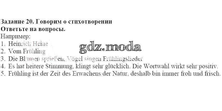ГДЗ решение к заданию № 20 Немецкий язык 5 класс Яковлева Л.Н. Просвещение 2020 Углубленный уровень ФГОС бесплатно на гдз.мода!