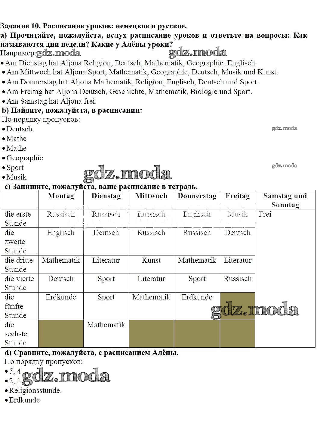 ГДЗ решение к заданию № 10 Немецкий язык 5 класс Яцковская Г.В. Просвещение 2017 ФГОС бесплатно на гдз.мода!