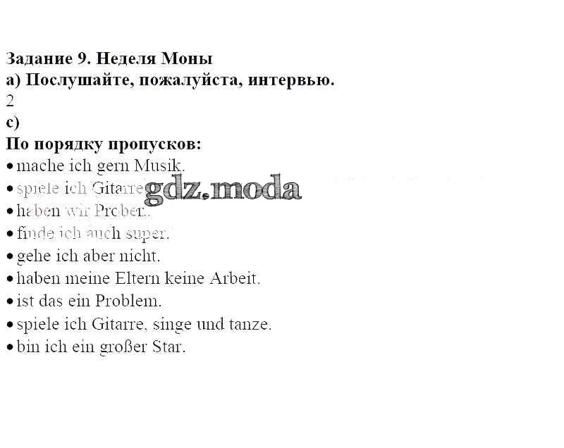 ГДЗ решение к заданию № 9 Немецкий язык 5 класс Яцковская Г.В. Просвещение 2017 ФГОС бесплатно на гдз.мода!