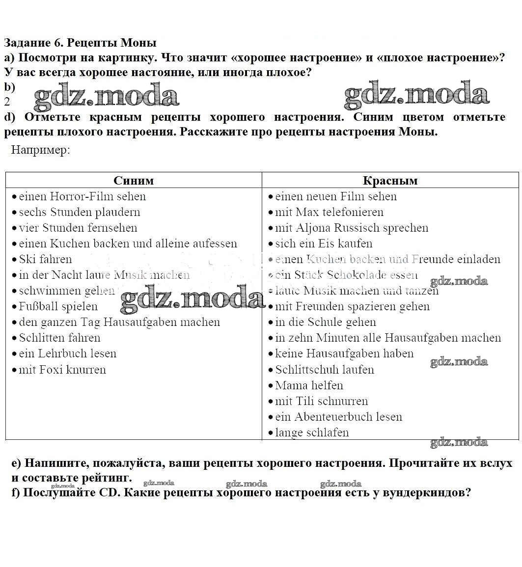 ГДЗ решение к заданию № 6 Немецкий язык 5 класс Яцковская Г.В. Просвещение 2017 ФГОС бесплатно на гдз.мода!