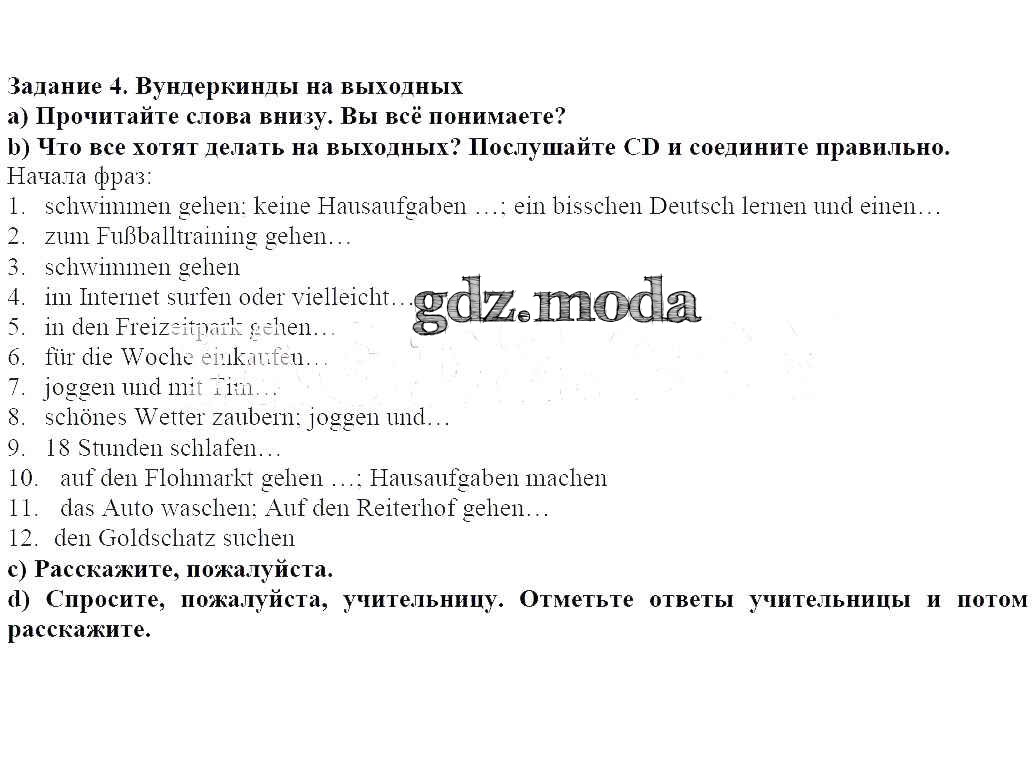 ГДЗ решение к заданию № 4 Немецкий язык 5 класс Яцковская Г.В. Просвещение 2017 ФГОС бесплатно на гдз.мода!