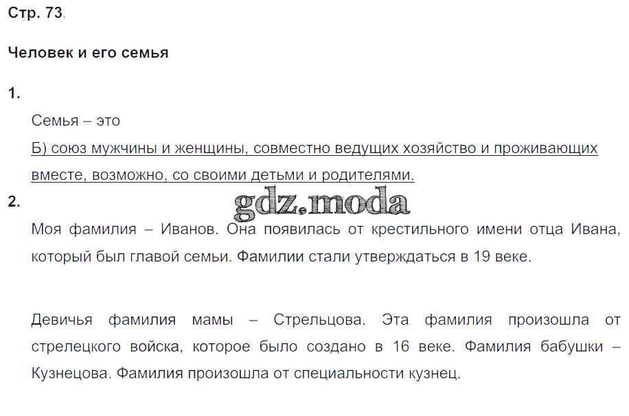 ГДЗ решение к заданию № стр. 73 Обществознание 5 класс рабочая тетрадь Болотина Т.В. (к уч. Никитина) Дрофа 2019 ФГОС бесплатно на гдз.мода!