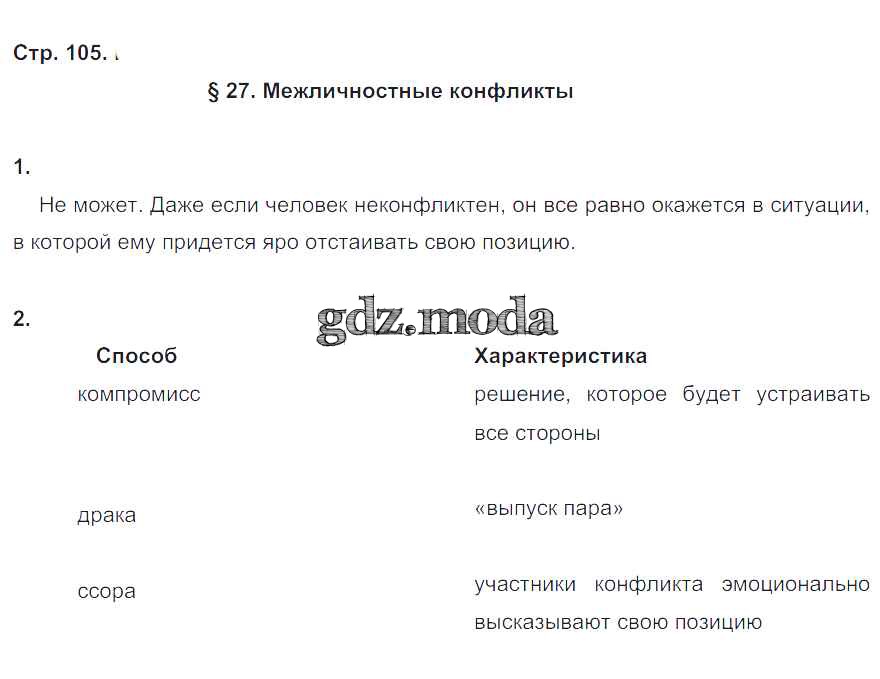 ГДЗ решение к заданию № 105 Обществознание 5 класс рабочая тетрадь Хромова И.С. (к уч. Кравченко) Русское слово 2016 ФГОС бесплатно на гдз.мода!