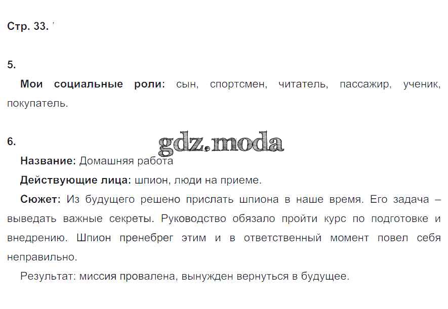 ГДЗ решение к заданию № 33 Обществознание 5 класс рабочая тетрадь Хромова И.С. (к уч. Кравченко) Русское слово 2016 ФГОС бесплатно на гдз.мода!