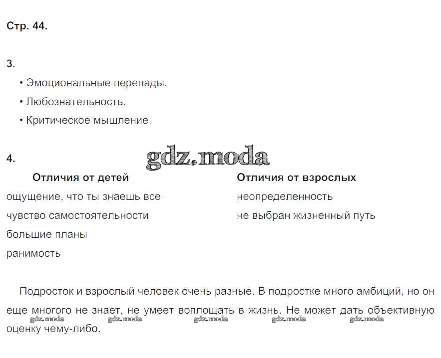 ГДЗ решение к заданию № 44 Обществознание 5 класс рабочая тетрадь Хромова И.С. (к уч. Кравченко) Русское слово 2016 ФГОС бесплатно на гдз.мода!