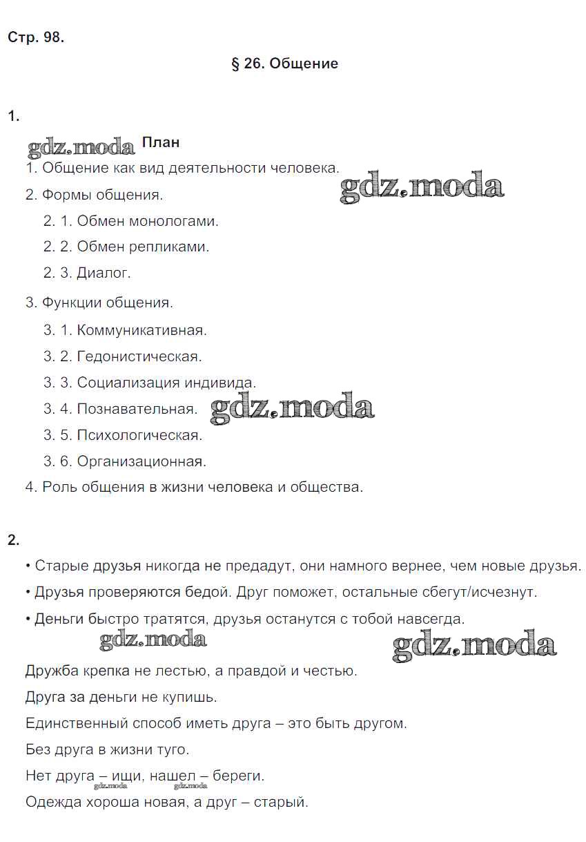 ГДЗ решение к заданию № 98 Обществознание 5 класс рабочая тетрадь Хромова И.С. (к уч. Кравченко) Русское слово 2016 ФГОС бесплатно на гдз.мода!