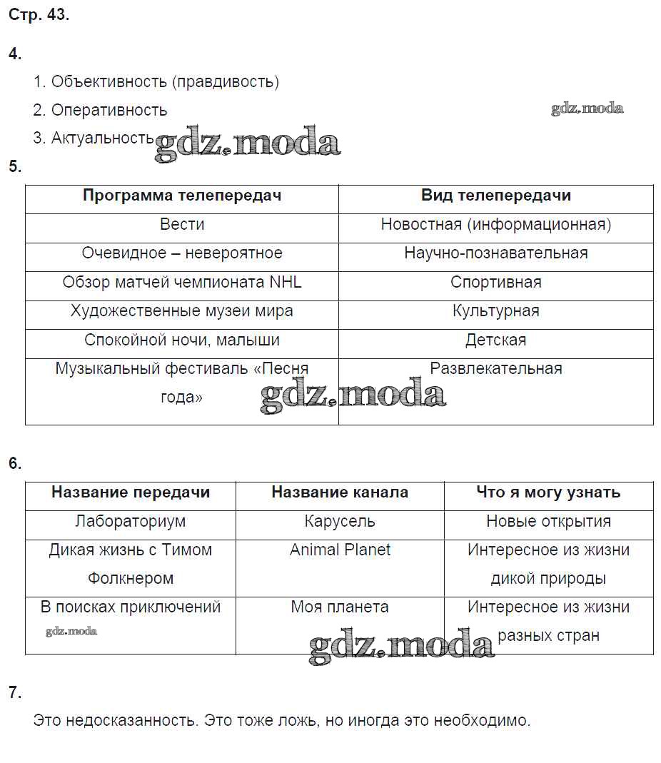 ГДЗ решение к заданию № 43 Обществознание 5 класс рабочая тетрадь Соболева О.Б. Вентана-граф 2018 ФГОС бесплатно на гдз.мода!