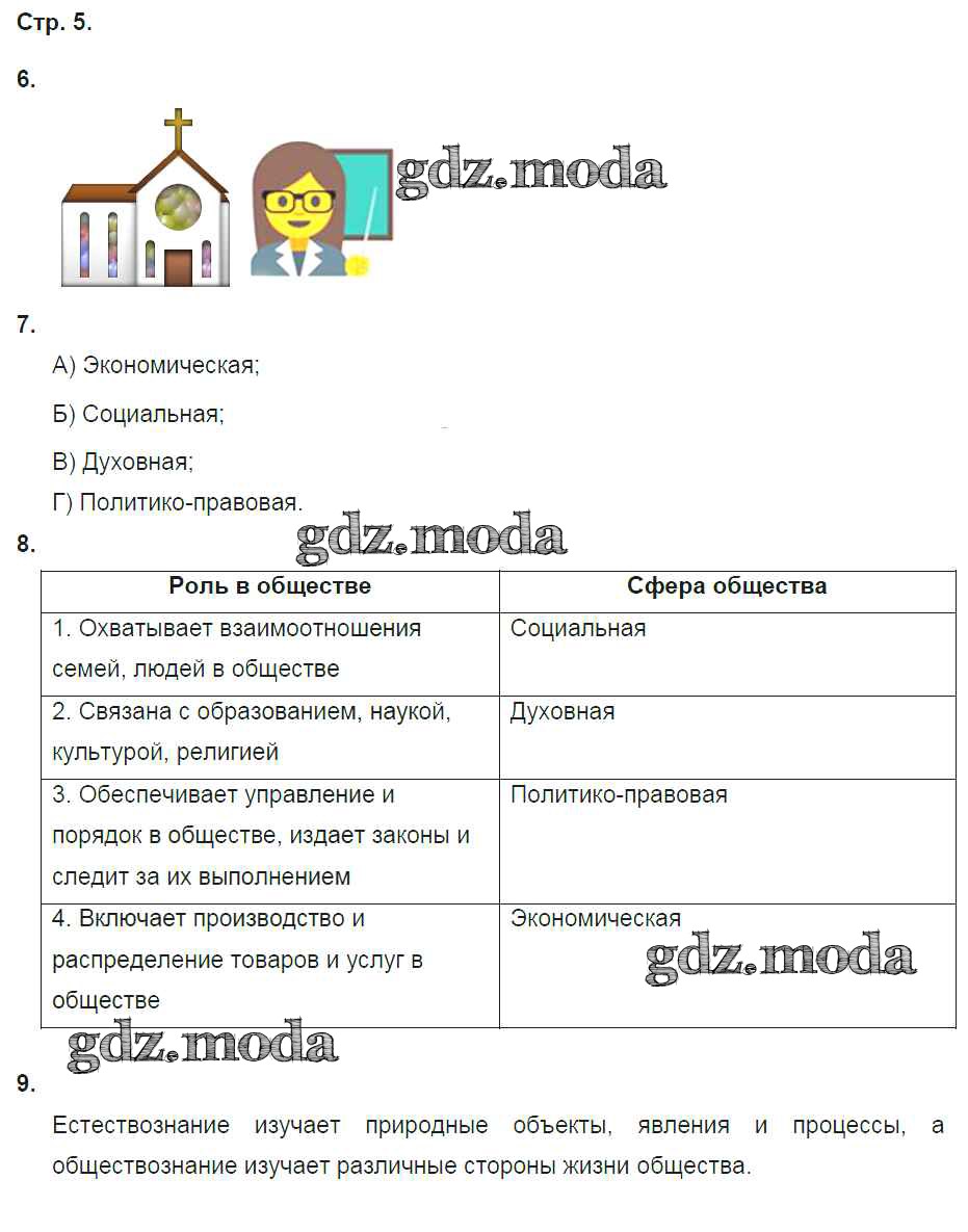 ГДЗ решение к заданию № 5 Обществознание 5 класс рабочая тетрадь Соболева О.Б. Вентана-граф 2018 ФГОС бесплатно на гдз.мода!