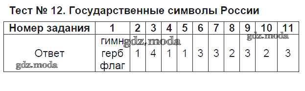ГДЗ решение к заданию № Тест №12. Государственные символы России Обществознание 5 класс Тесты Лебедева Р.Н. (к уч. Ивановой) Экзамен 2016 ФГОС бесплатно на гдз.мода!