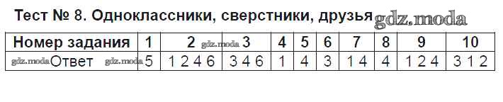 ОТВЕТ на задание № Тест №8. Одноклассники, сверстники, друзья Тесты по Обществознанию 5 класс Лебедева УМК