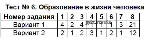 ОТВЕТ на задание № Тест-6. Образование в жизни человека Контрольно-измерительные материалы (КИМ) по Обществознанию 5 класс Волкова