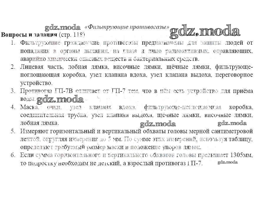 ГДЗ решение к заданию № 118 ОБЖ 5 класс Поляков В.В. Дрофа 2015 ФГОС бесплатно на гдз.мода!