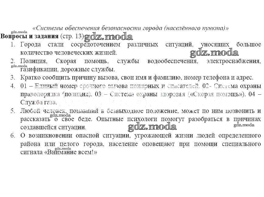ОТВЕТ на задание № 13 Учебник по ОБЖ 5 класс Поляков Вертикаль