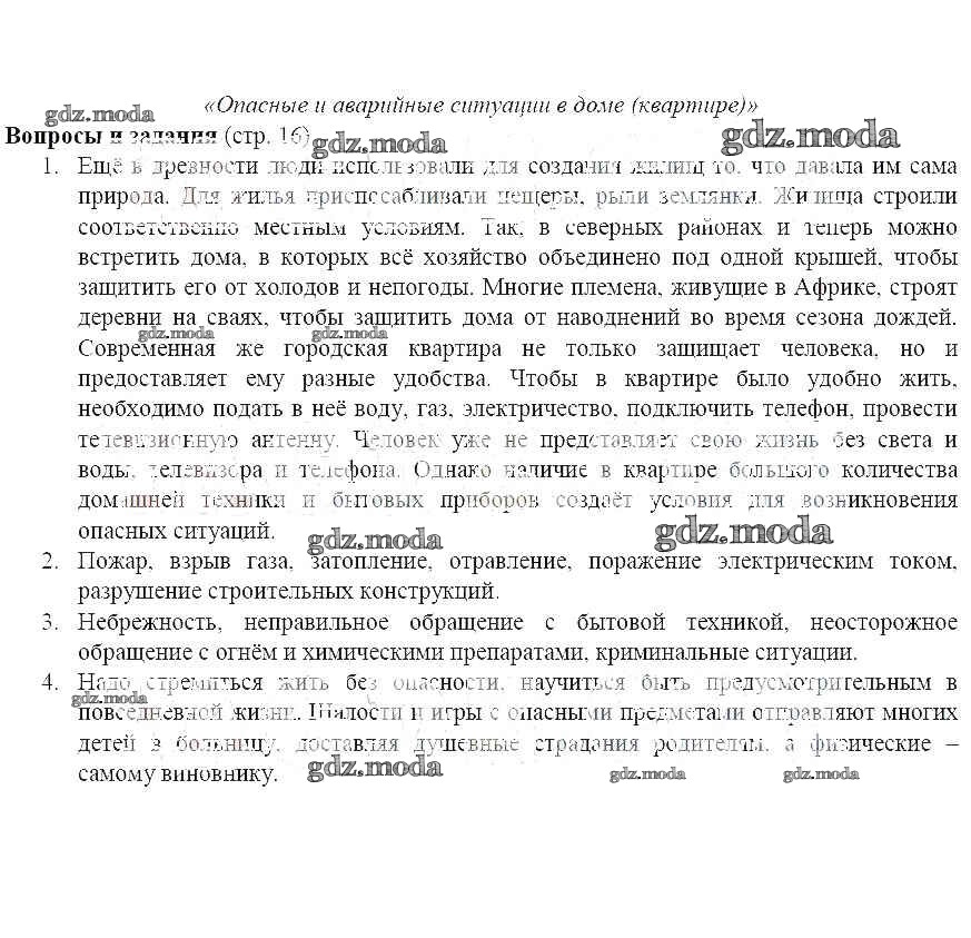 ГДЗ решение к заданию № 16 ОБЖ 5 класс Поляков В.В. Дрофа 2015 ФГОС бесплатно на гдз.мода!
