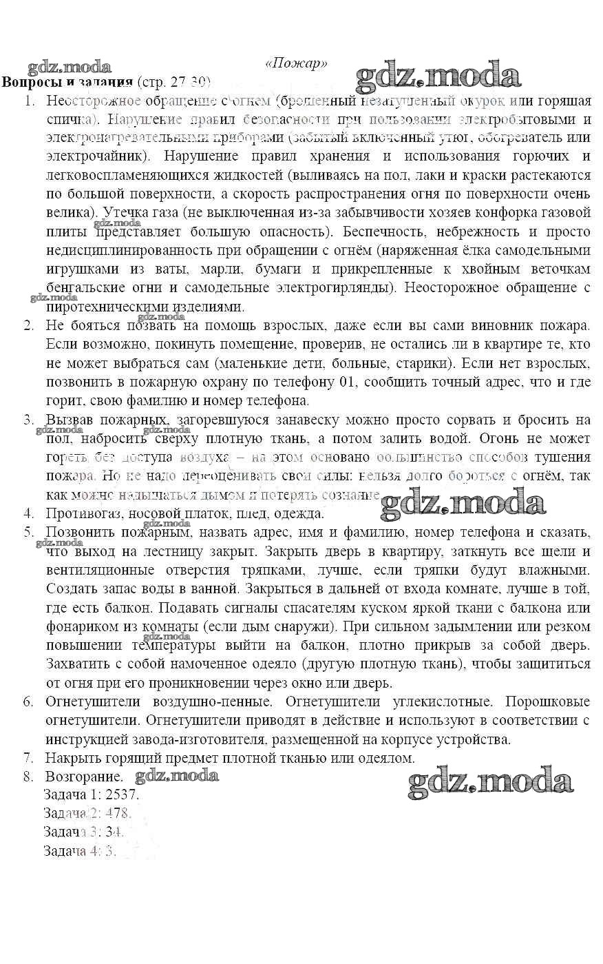ГДЗ решение к заданию № 27-30 ОБЖ 5 класс Поляков В.В. Дрофа 2015 ФГОС бесплатно на гдз.мода!