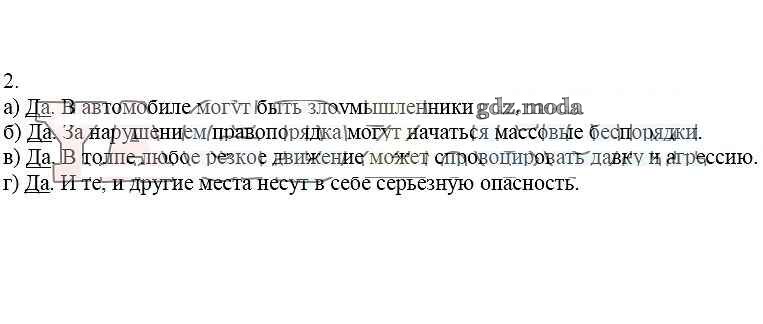 ГДЗ решение к заданию № 2 ОБЖ 5 класс рабочая тетрадь Демидов О.П. Лицей 2016 бесплатно на гдз.мода!