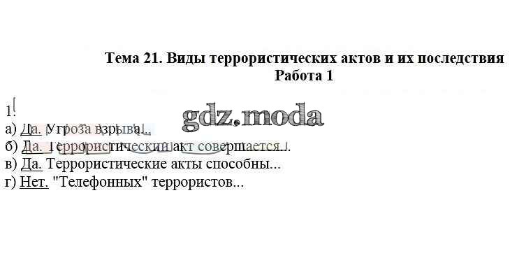 ОТВЕТ на задание № 1 Рабочая тетрадь по ОБЖ 5 класс Демидов