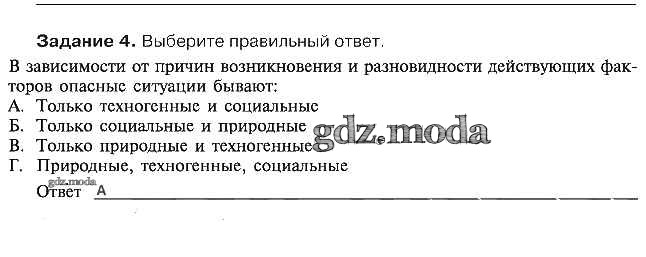 ОТВЕТ на задание № 4 Рабочая тетрадь по ОБЖ 5 класс Драновская
