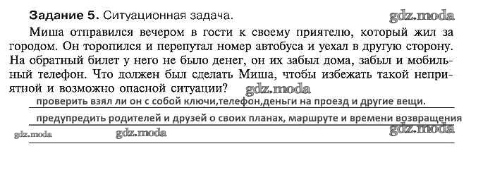 ГДЗ решение к заданию № 5 ОБЖ 5 класс рабочая тетрадь Драновская Р.Г. Аст/Астрель 2014 ФГОС бесплатно на гдз.мода!