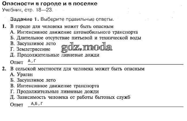 ОТВЕТ на задание № 1 Рабочая тетрадь по ОБЖ 5 класс Драновская