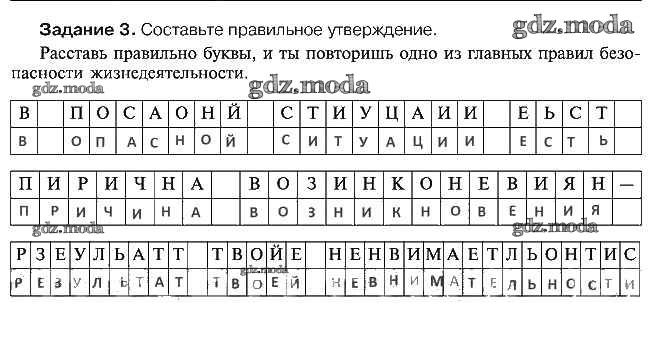 ОТВЕТ на задание № 3 Рабочая тетрадь по ОБЖ 5 класс Драновская