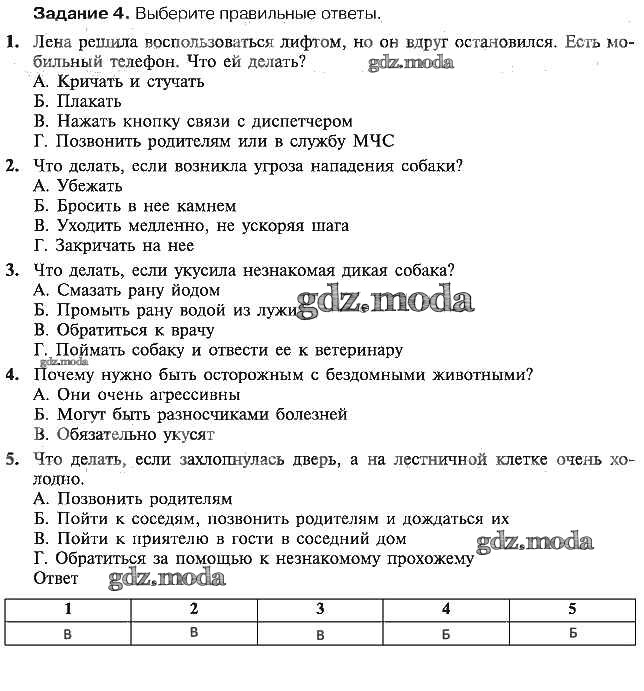 ОТВЕТ на задание № 4 Рабочая тетрадь по ОБЖ 5 класс Драновская