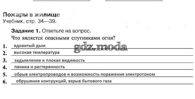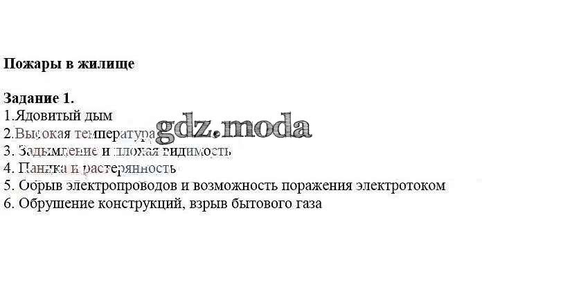 ОТВЕТ на задание № 1 Рабочая тетрадь по ОБЖ 5 класс Драновская