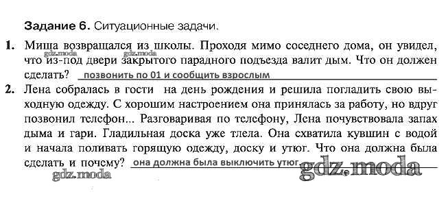 ОТВЕТ на задание № 6 Рабочая тетрадь по ОБЖ 5 класс Драновская