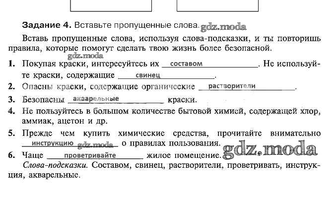 ОТВЕТ на задание № 4 Рабочая тетрадь по ОБЖ 5 класс Драновская