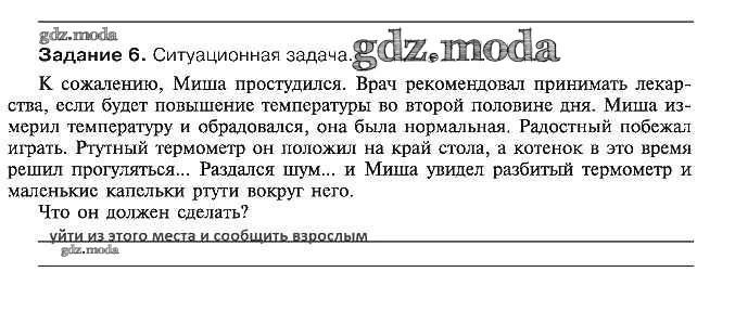 ГДЗ решение к заданию № 6 ОБЖ 5 класс рабочая тетрадь Драновская Р.Г. Аст/Астрель 2014 ФГОС бесплатно на гдз.мода!