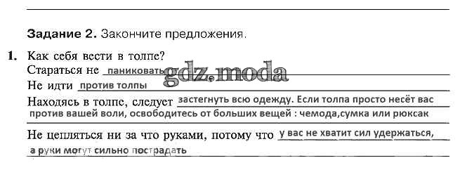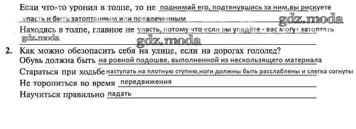 ОТВЕТ на задание № 5 Рабочая тетрадь по ОБЖ 5 класс Драновская