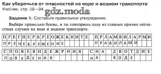 ОТВЕТ на задание № 1 Рабочая тетрадь по ОБЖ 5 класс Драновская