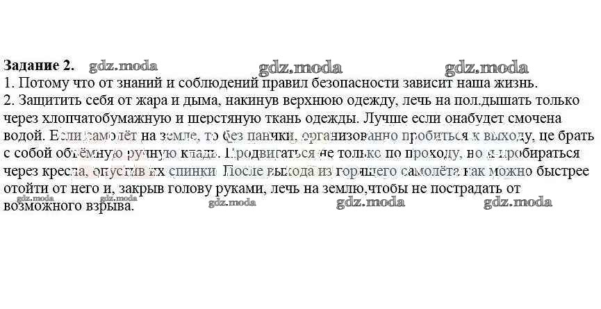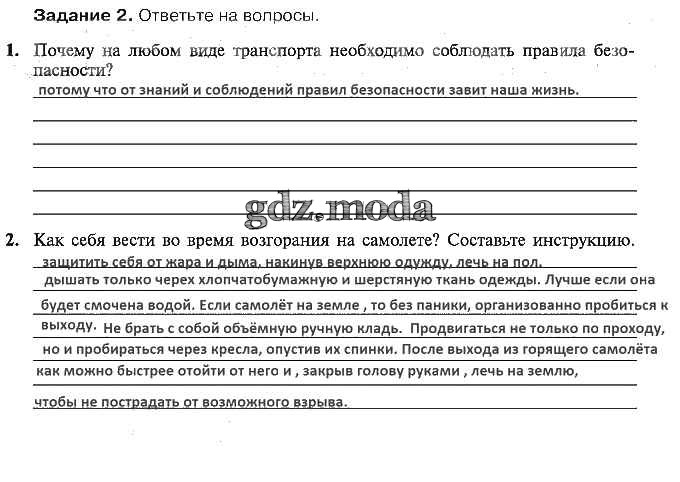 ОТВЕТ на задание № 2 Рабочая тетрадь по ОБЖ 5 класс Драновская