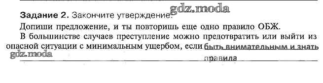 ОТВЕТ на задание № 2 Рабочая тетрадь по ОБЖ 5 класс Драновская