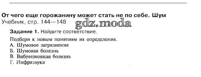 ОТВЕТ на задание № 1 Рабочая тетрадь по ОБЖ 5 класс Драновская