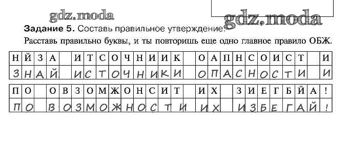 ГДЗ решение к заданию № 5 ОБЖ 5 класс рабочая тетрадь Драновская Р.Г. Аст/Астрель 2014 ФГОС бесплатно на гдз.мода!